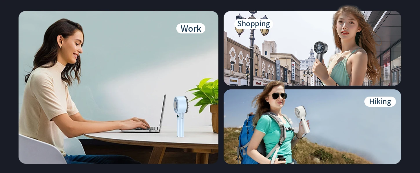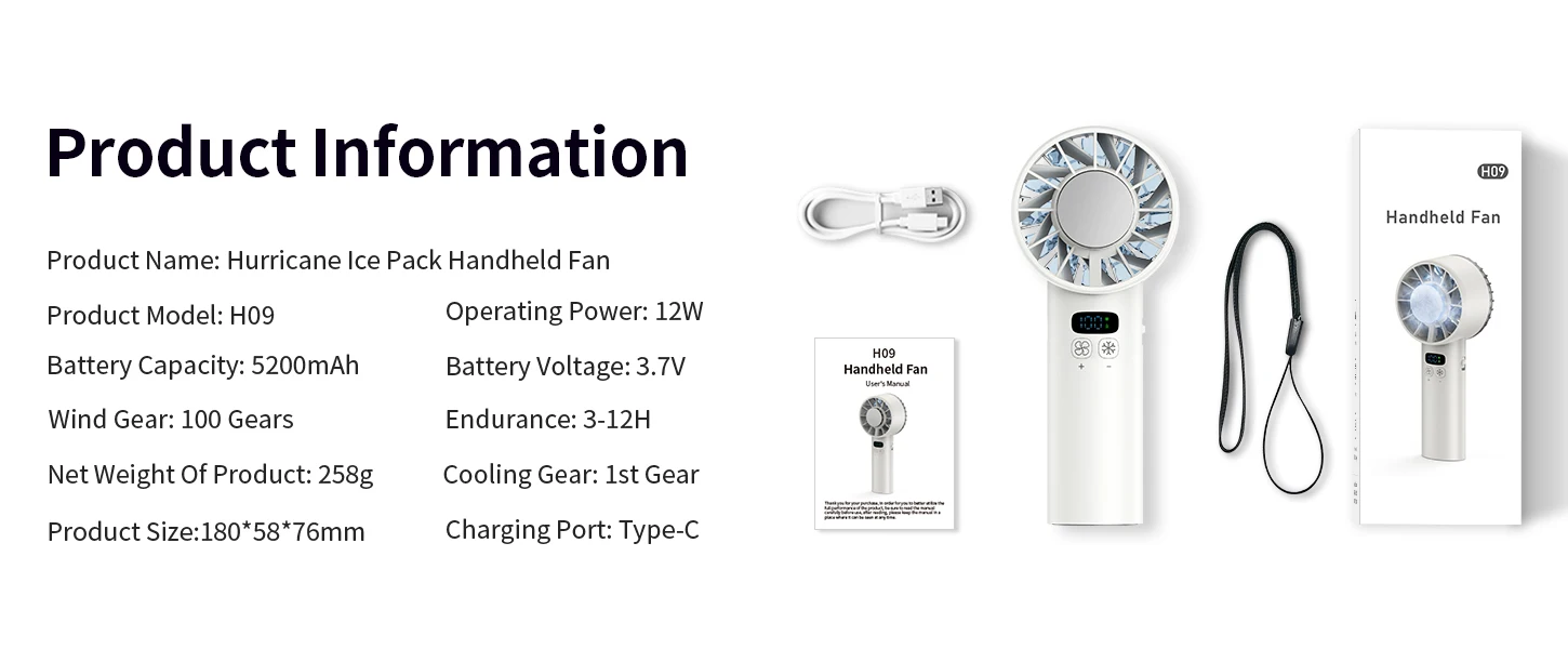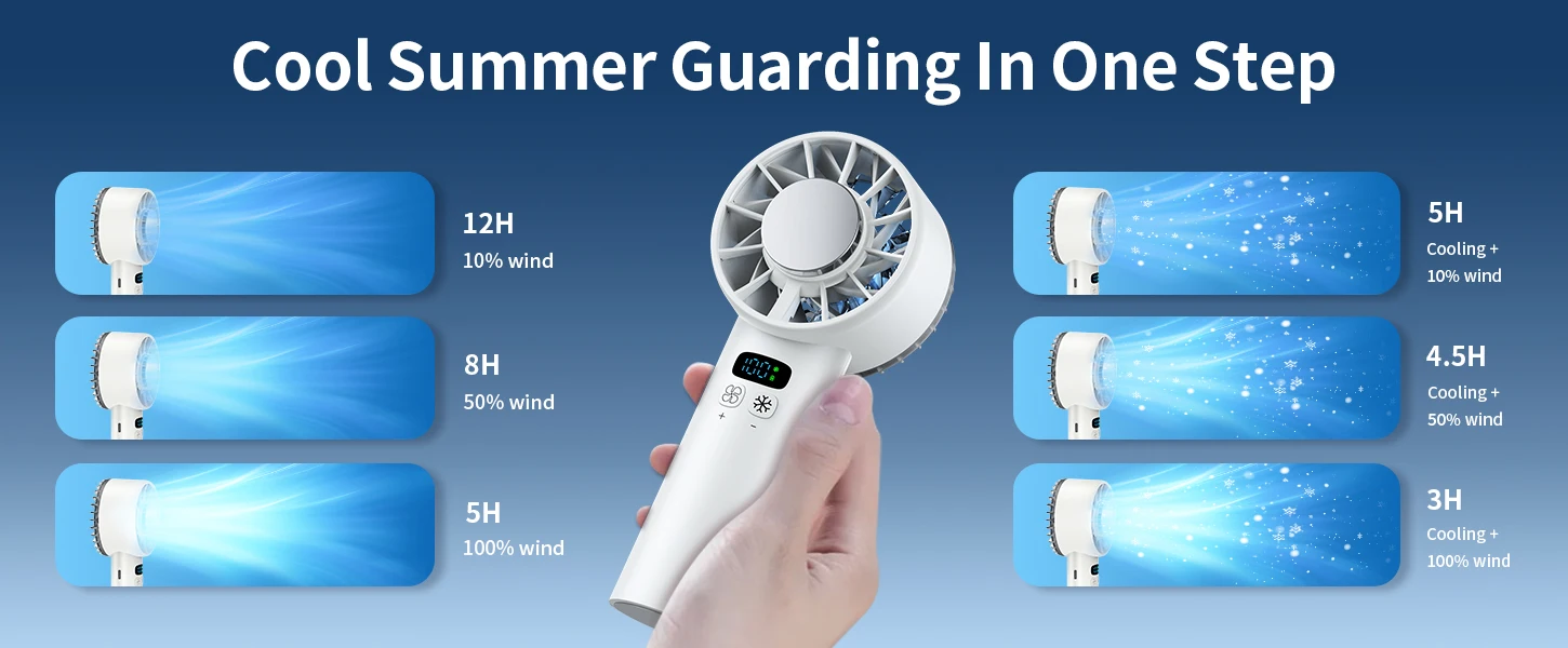 Outdoor Portable Mini Fan Handheld Fan with LED Display Semiconductor Refrigeration 100 Wind Speeds USB Rechargeable Battery Fan